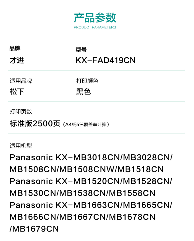 參數(shù) [商品名稱] 松下KX-FAD419CN 硒鼓
