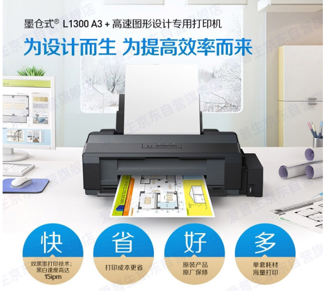 愛普生(EPSON)L1300 A3+大幅面墨倉式打印機(jī)工程CAD圖形設(shè)計(jì)專用彩色雙黑打印機(jī) 工業(yè)設(shè)備