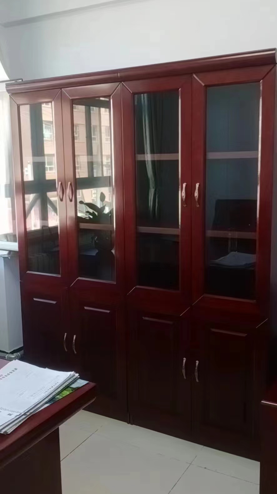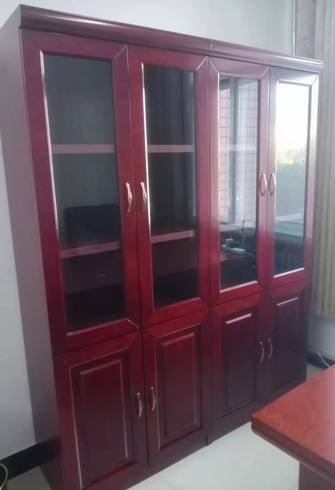 參數(shù) [規(guī)格尺寸] 1.6*0.4*2.0m [材質(zhì)] 采用環(huán)保密度板,表面經(jīng)熱壓貼進(jìn)口一級胡桃木木皮,木皮厚度≥0.6mm,油漆采用環(huán)保無味聚酯漆,涂層均勻不褪色,漆面平整光滑,手感好 [工藝] 采用閉漆工藝,采用優(yōu)質(zhì)五金配件。結(jié)構(gòu)采用板式連接件拼裝結(jié)構(gòu)。