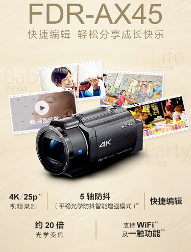 參數(shù) [品牌] 索尼 [型號] FDR-AX45A [毛重] .0kg [產(chǎn)地] 中國大陸 [類型] 輕巧便攜 [單位] 套